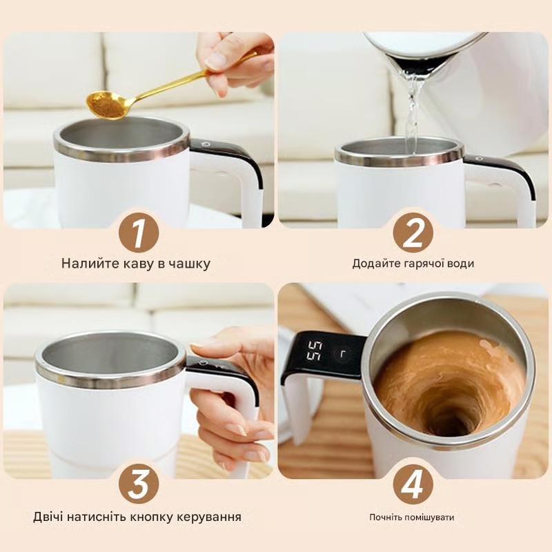 Більше жодного помішування ложками — просто натисніть кнопку, і кухоль зробить всю роботу. За лічені хвилини ваш напій буде ідеально змішаний. Вбудований світлодіодний дисплей температури щоразу інформуватиме вас про ідеальний ковток.