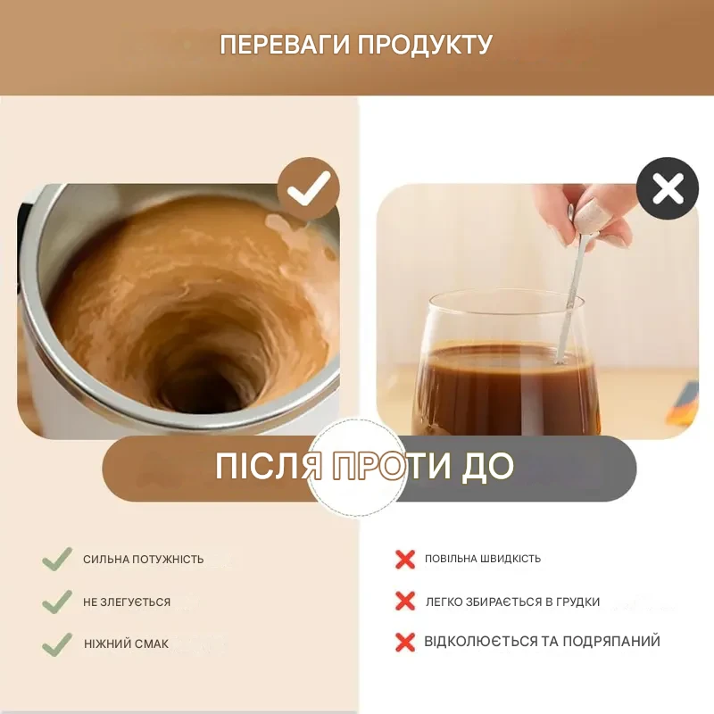 Багаторазове використання: Добре зроблена кружка для насолоди ранковою кавою. Розроблена для зручного використання в дорозі. Міцна кришка мінімізує розливання, навіть коли увімкнено функцію змішування. Тримайте нижню кришку закритою для найкращих результатів. Ідеально підходить для кави, чаю, гарячого шоколаду, молока, протеїнових коктейлів, лимонаду та багатьох інших збитих легких мішаних напоїв.