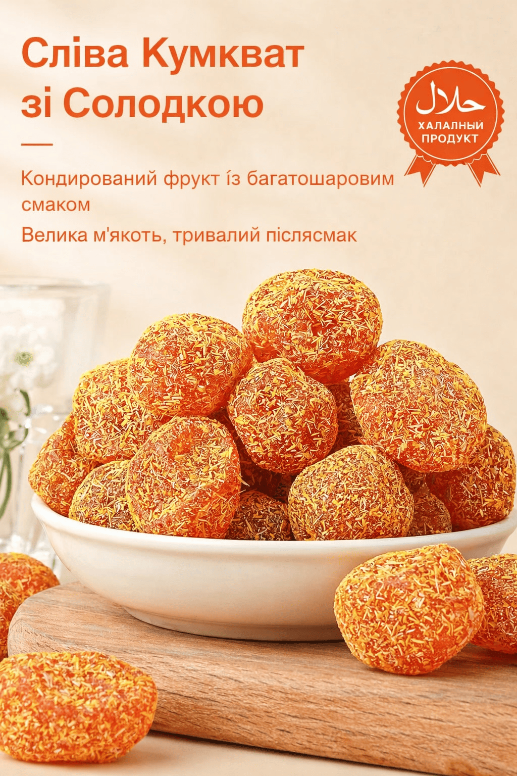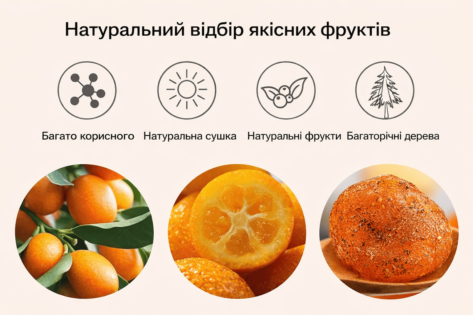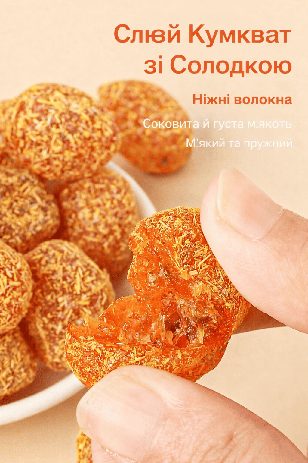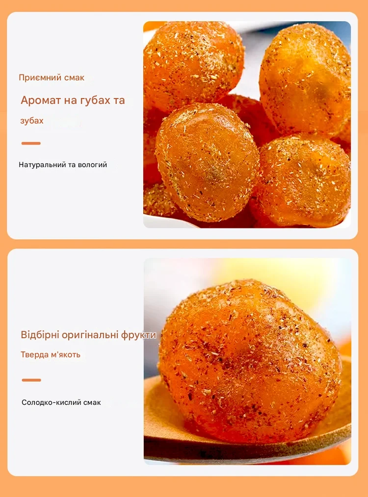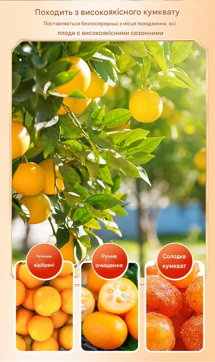«Дуже незвичний і приємний смак. Кумкват м’який, соковитий, не пересушений, післясмак довгий і теплий. Добре заходить до чаю, особливо в холодну пору.»