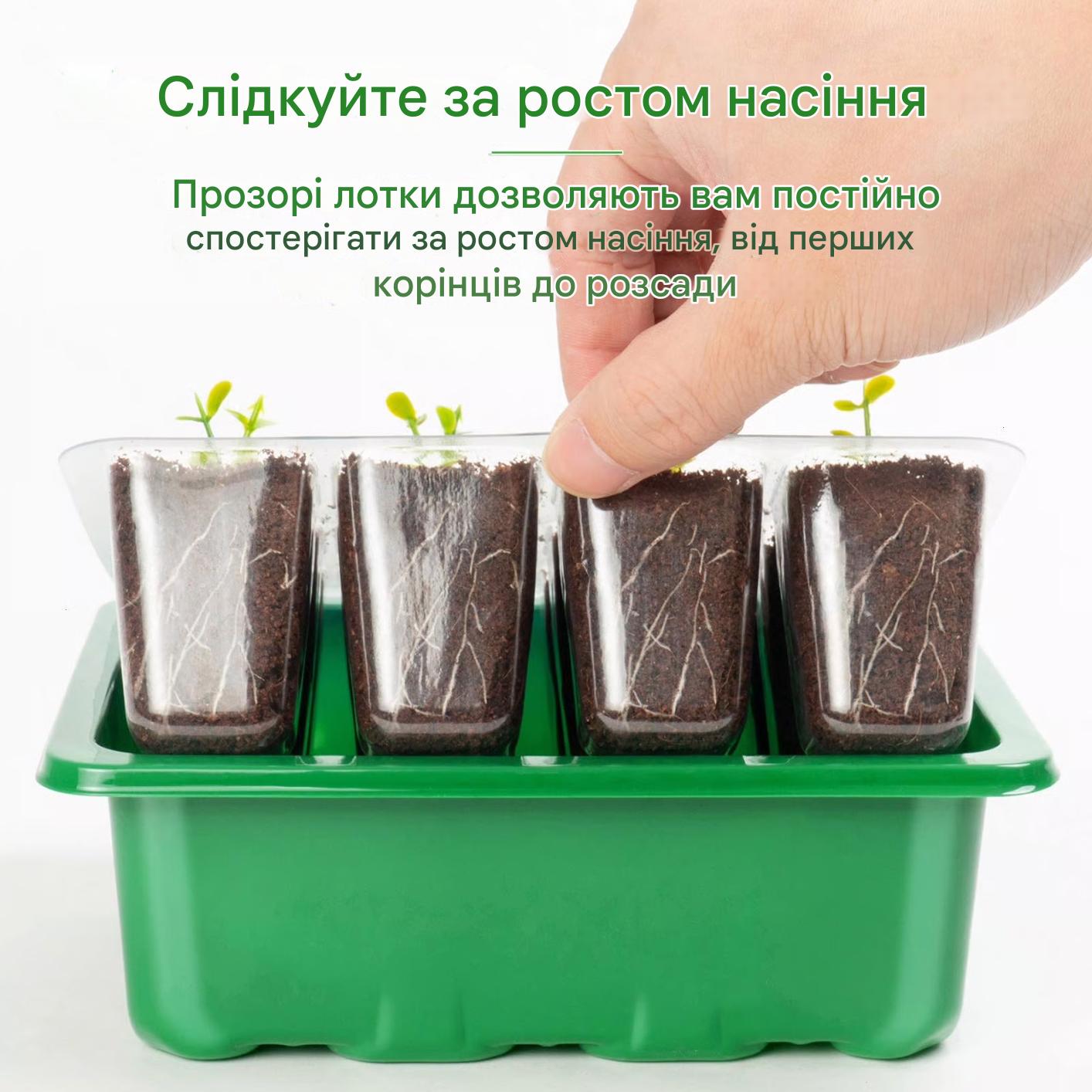Лоток для розсади виготовлений з прозорих матеріалів, що дозволяє легко спостерігати за проростанням і ростом насіння під час процесу розмноження, не перериваючи процес росту. Прикріплена етикетка рослини допомагає вам фіксувати процес росту.