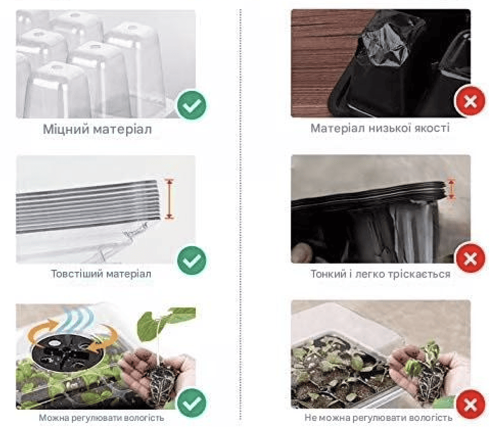 ЧУДОВИЙ МАТЕРІАЛ — Виготовлений з видатного поліпропілену, який нетоксичний, екологічно чистий, міцний, нелегко ламається, довговічний для тривалого використання та не впливає на проростання та ріст насіння.