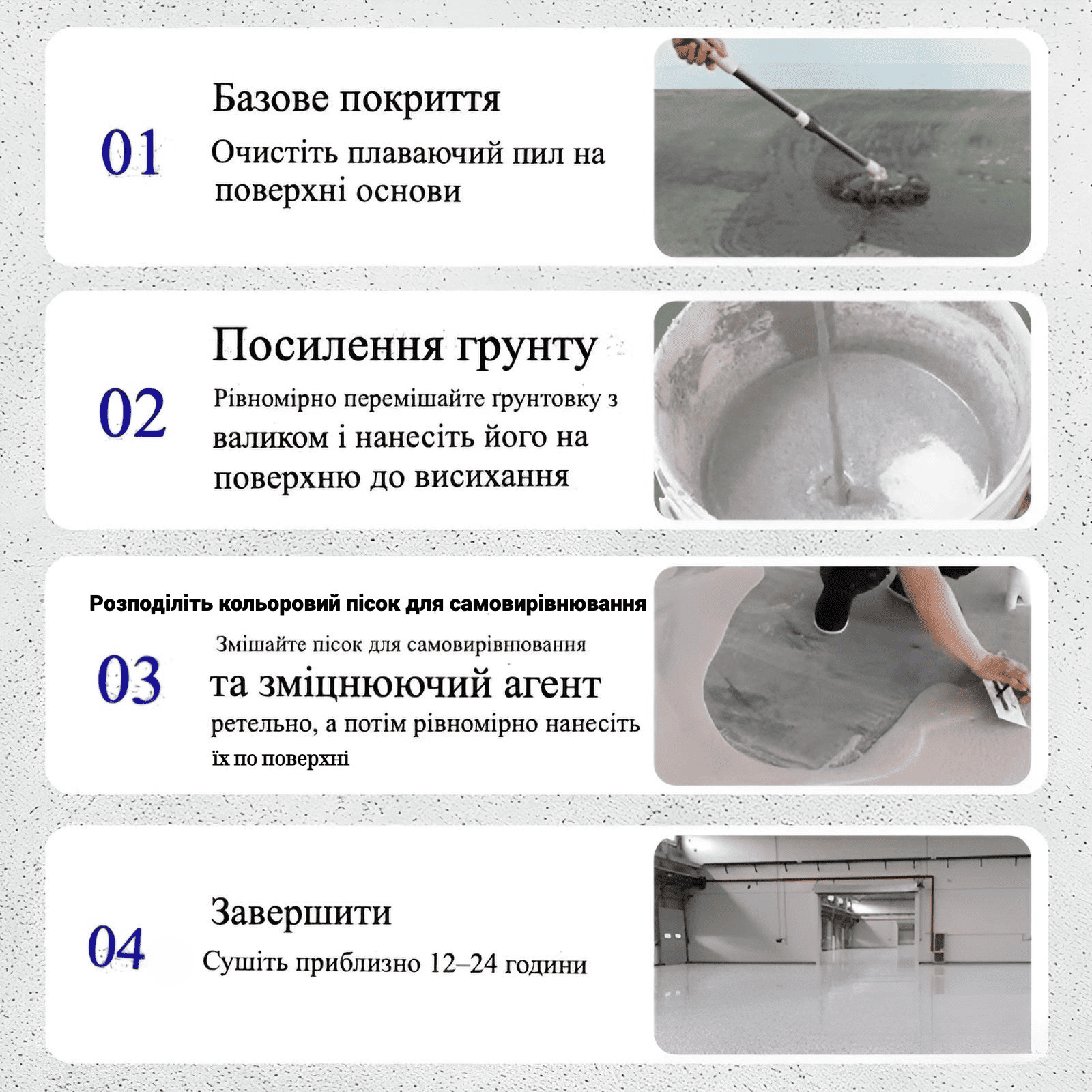 Це епоксидне покриття для підлоги виготовлене з екологічно чистих матеріалів, безпечних як для користувача, так і для навколишнього середовища. Воно не має запаху та забезпечує приємний і здоровий процес нанесення.