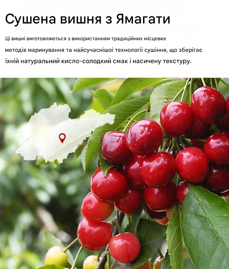 Приємно здивований! Справжній смак вишні, не пересушена, дуже корисний перекус.