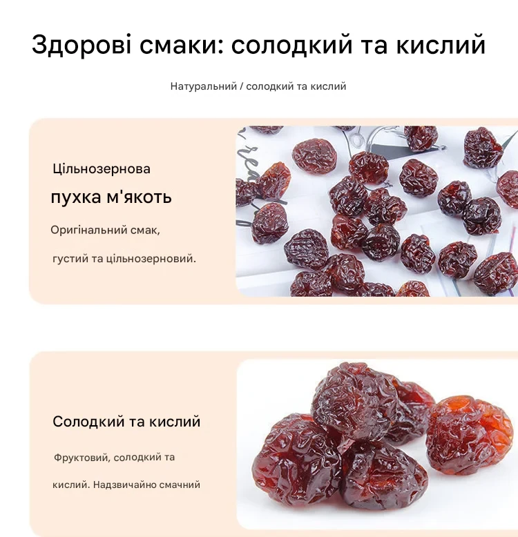 «Приємно здивований! Справжній смак вишні, не пересушена, дуже корисний перекус. »